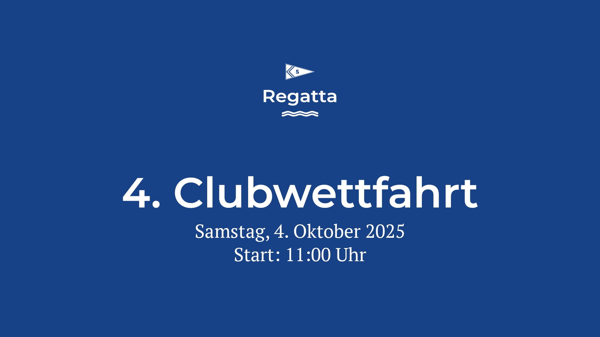 am Samstag, den 4. Oktober 2025 findet die 4. Clubwettfahrt des SCS statt. Bitte beachtet, dass der Start auf 11:00 Uhr vorverlegt wurde. Entsprechend beginnt die Steuerleutebesprechung bereits um 9:30 Uhr in der Messe des SCS.